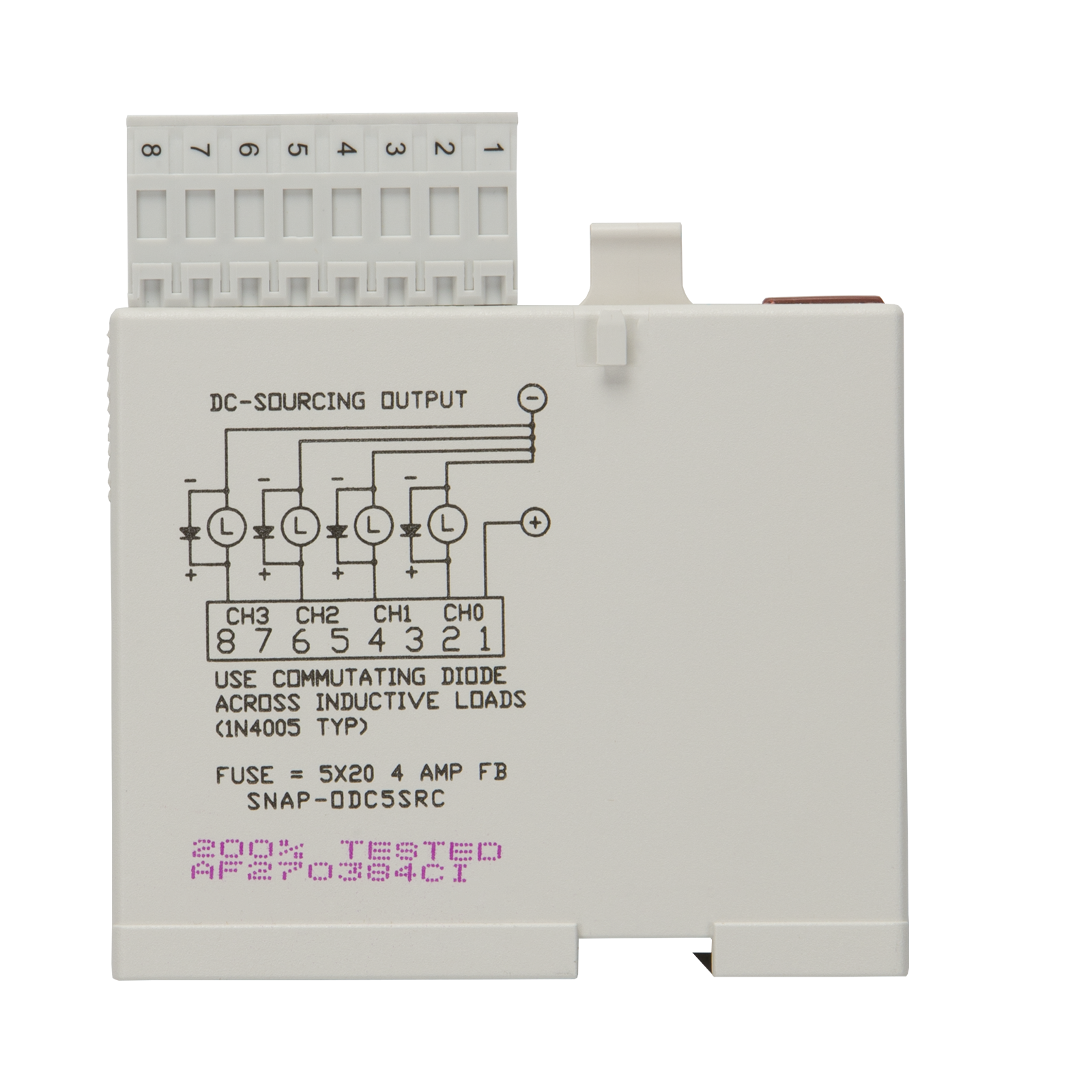 250 VAC - 4A 5x20 mm Fast-acting Bell Fuse Part No. BEL 5HF4 Opto 22 Part SNAP-FUSE4AB