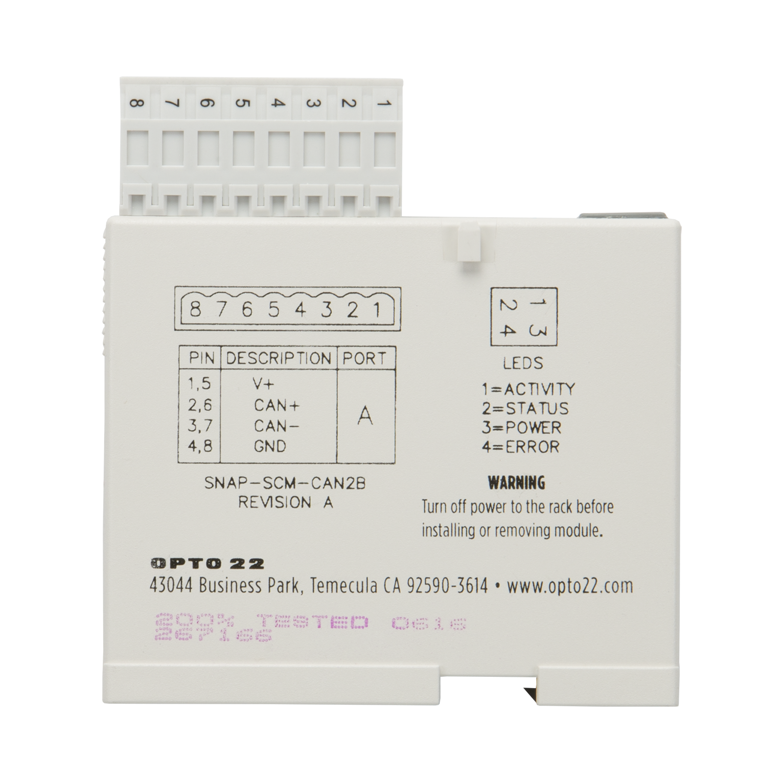 The SNAP-SCM-CAN2B module is designed for use with Opto 22 ’s SNAP PAC
