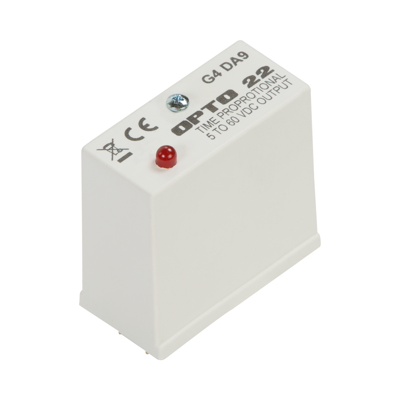The G4DA9 time proportional output (TPO) module provides digital control from a mistic analog brick or modular controller. Each module is optically isolated to 4,000 volts (transient) from field devices and features point-to-point electrical isolation. The G4DA9 switches 5-60 VDC. Together with a
