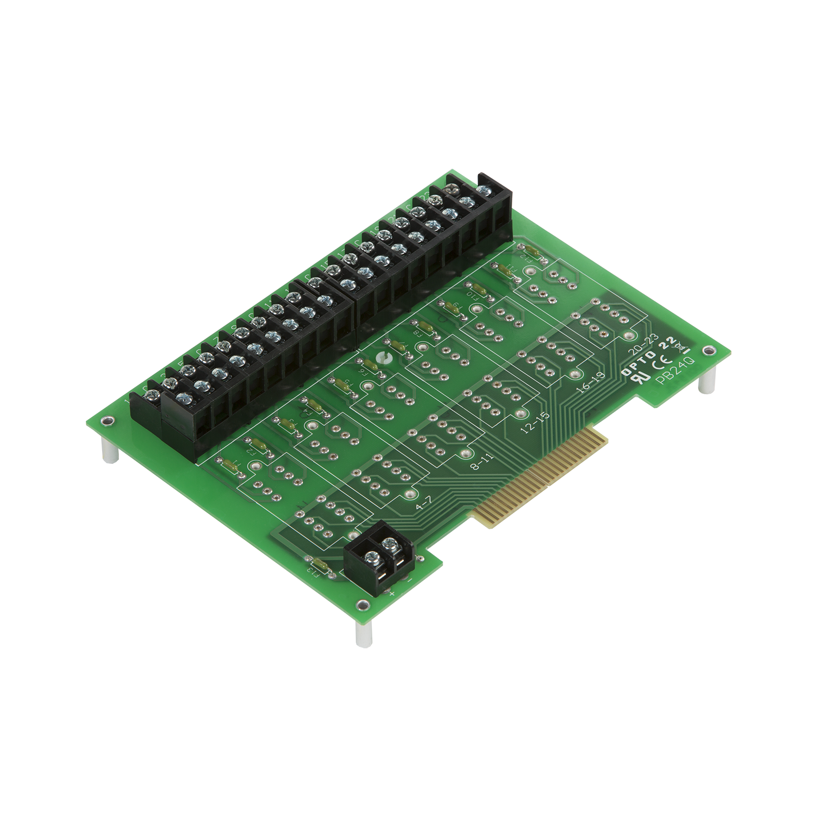 The PB24Q I/O mounting rack can accommodate up to six Quad Pak I/O modules for a total of 24 I/O channels.